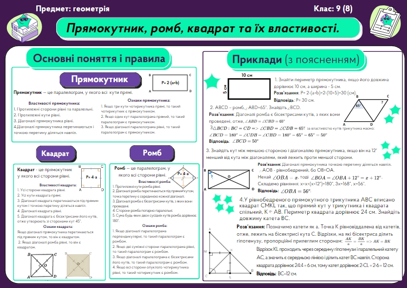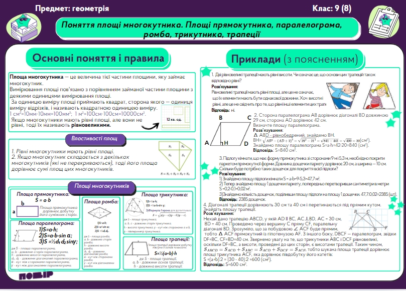 Поняття площі многокутника. Площі прямокутника, паралелограма, ромба, трикутника, трапеції