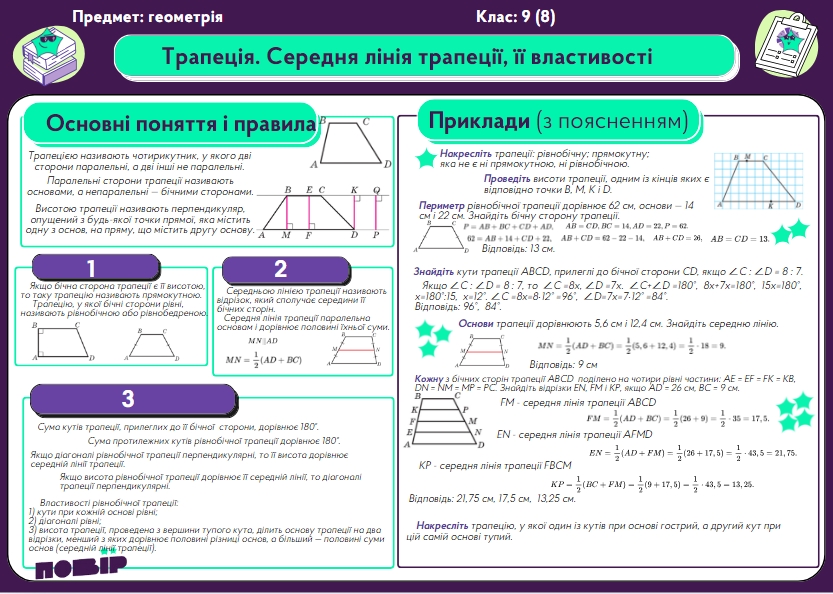 Трапеція. Середня лінія трапеції, її властивості