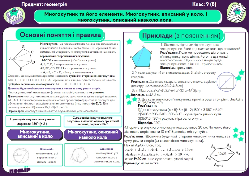 Многокутник та його елементи. Многокутник, вписаний у коло, і многокутник, описаний навколо кола.